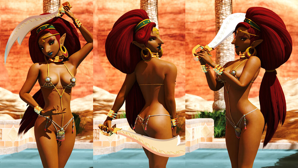 A lovely pinup this week, with Lady Urbosa, showing us a gorgeous bikini she's dug out of her closet. I absolutely love how this one turned out, from the composition of the background to the sword, glinting in her hand.